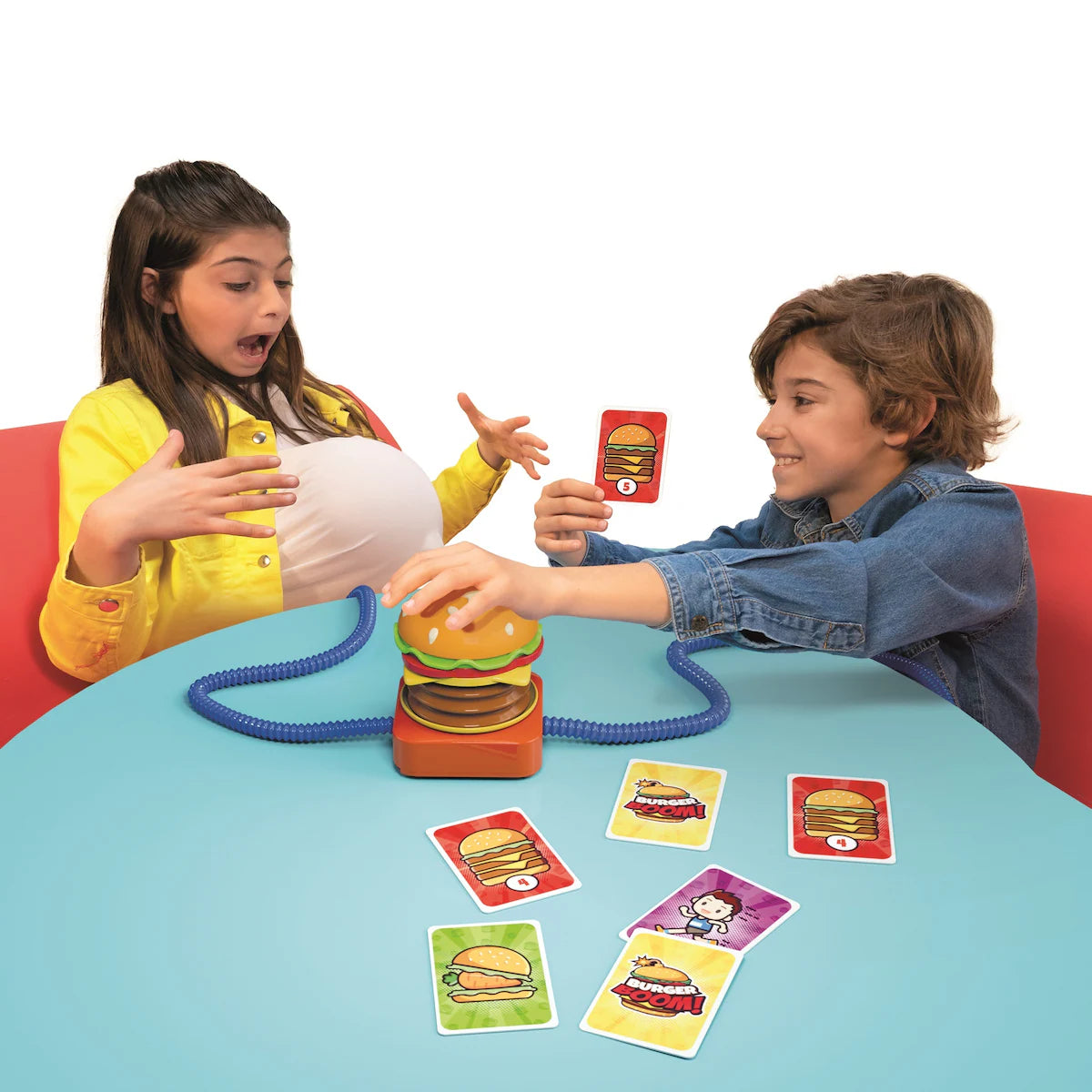¡Un juego emocionante donde tienes que hacer explotar a tu oponente con un ¡BOOM!! Toma las cartas e intenta presionar la hamburguesa tantas veces como te indiquen para llenarle la barriga a tu oponente y hacerlo explotar. Pero mantén los ojos bien abiertos, porque nunca sabes quién explotará.