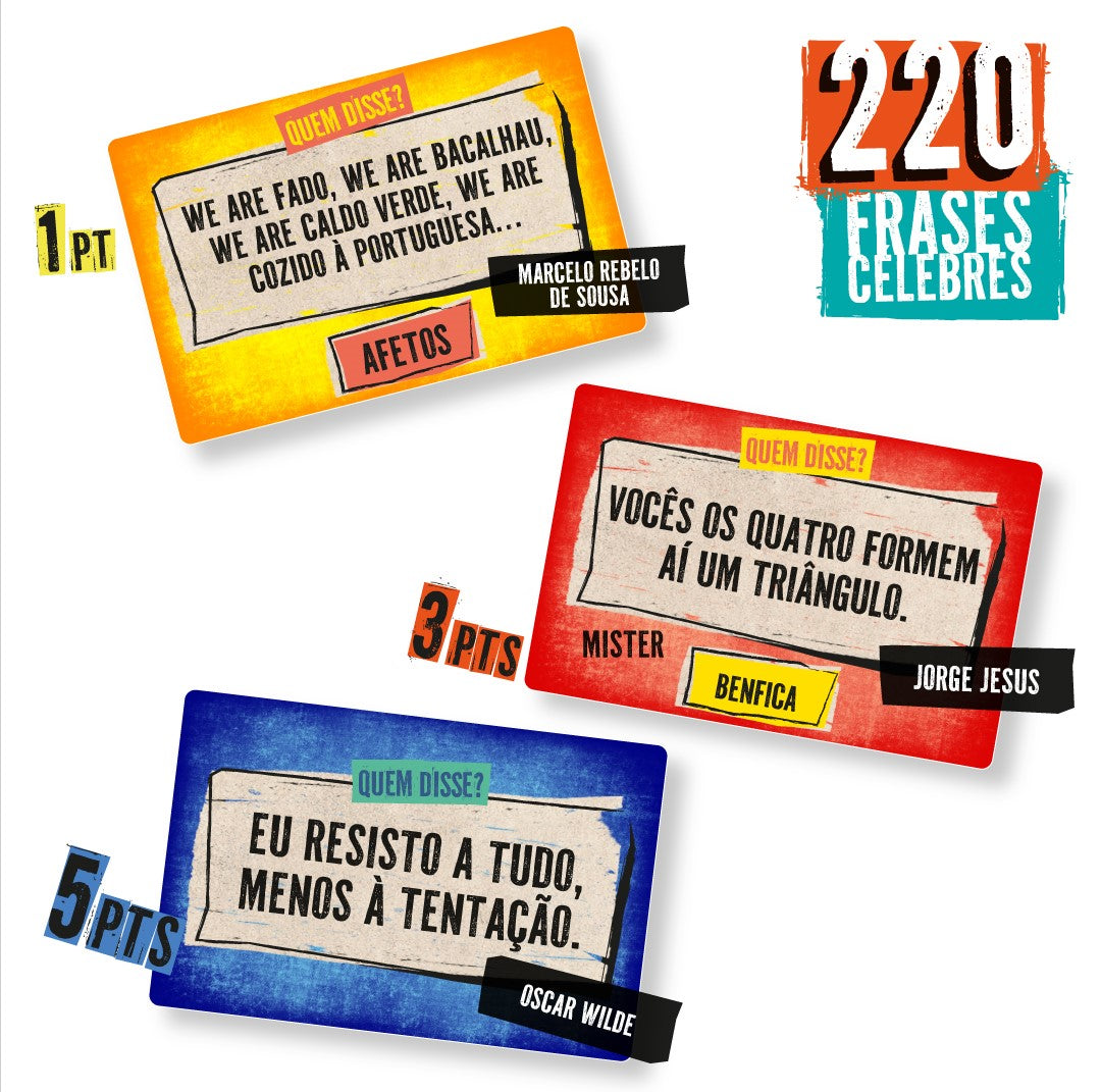 Desde Jorge Jesus hasta Hamlet, desde Homero Simpson hasta Einstein, ¡Diz que Disse es el cuestionario de citas célebres que te hace ganar puntos! En esta nueva versión, revisada y ampliada, encontrarás 220 citas famosas.