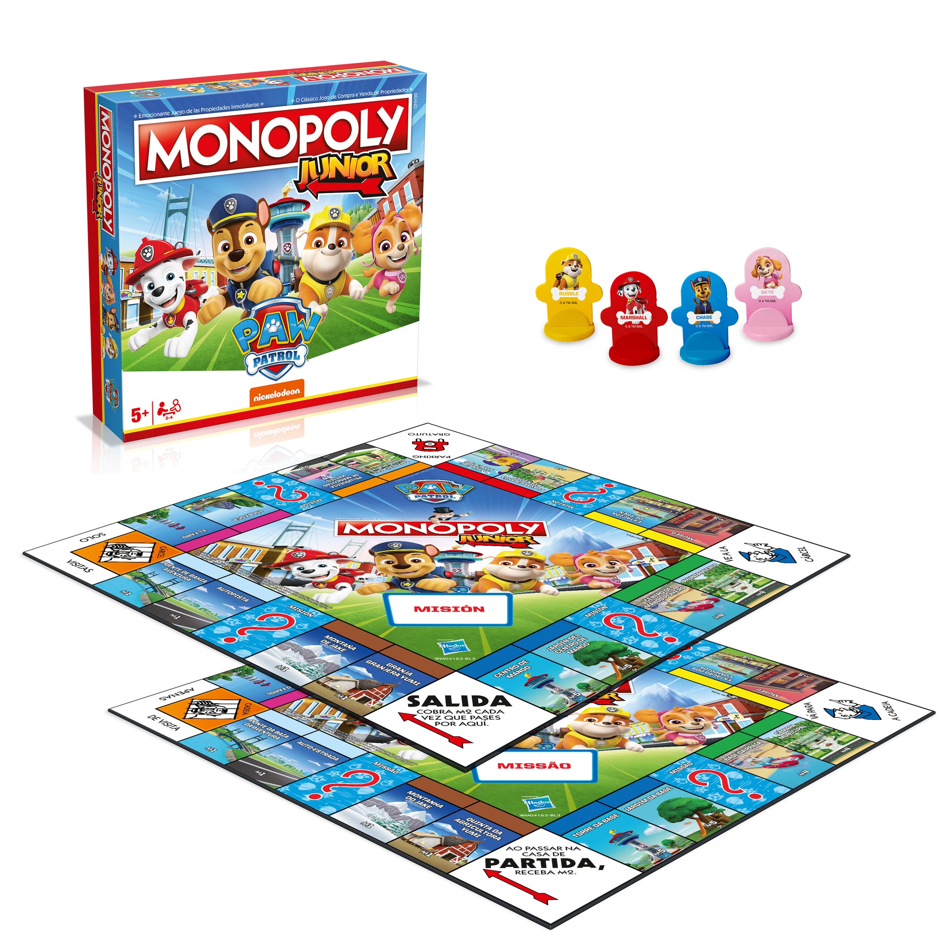 Descubre tus lugares favoritos de Paw Patrol, desde la playa de Bahía Aventura y el parque hasta el cuartel general de Paw Patrol. Explora cada casilla del tablero y completa misiones especiales. Elige uno de los cuatro personajes de Paw Patrol: Chase, Marshall, Skye o Rubble, y embárcate en una emocionante aventura con esta edición especial de Paw Patrol Junior Monopoly.